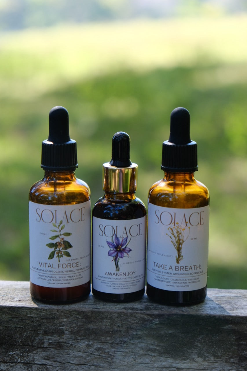 Our 3 most loved tinctures, discounted almost 20% off for you in a beautiful bundle of nervous system regulating herbal remedies.